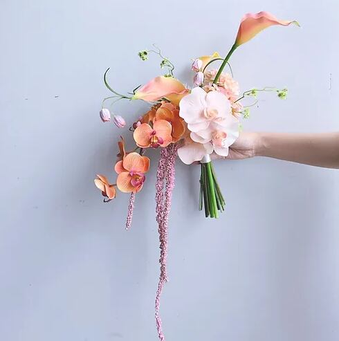 アプリコットカラーのお花でまとめた【造花】ブーケです。